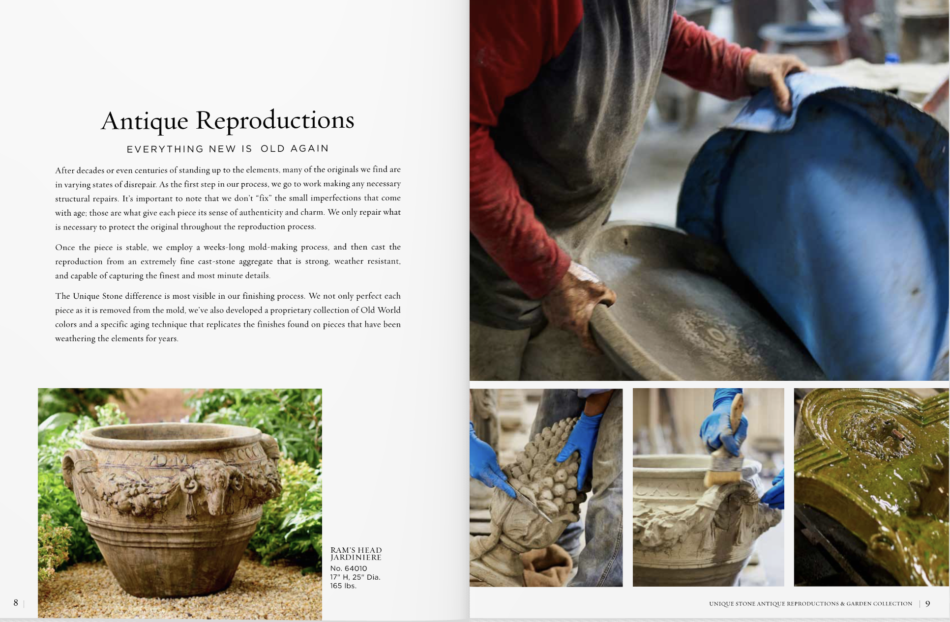 Family-owned Unique Stone was re-creating some of the country’s most extrarodinary garden statues and ornaments but nobody knew it. Their work included painstakingly crafted reproductions of American and European Antiques, including pieces from The Biltmore Estate in North Carolina and The Historic Charleston Collection. Their craftsman was unparalleled—cast concrete made without seams and hand-finished to exact specifications. And, they were creating their own contemporary masterpieces, designed to last for generations. We realized the world needed to understand that Unique Stone was doing more than making statues; they were making and re-making history every single day.